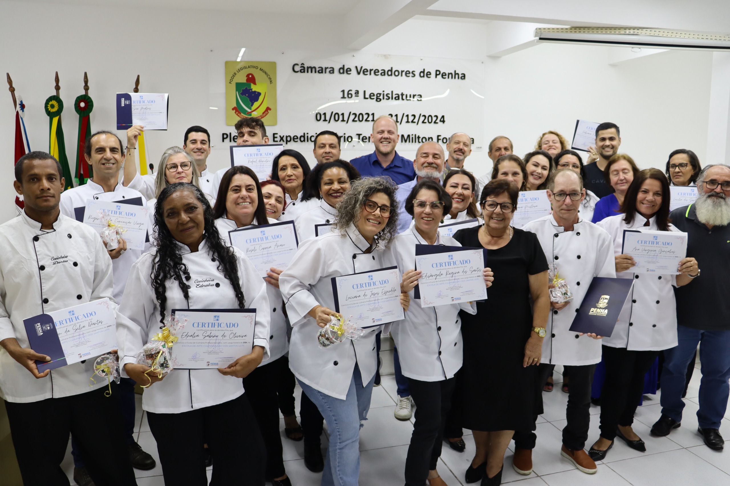 Nesta terça-feira (05/12), os 21 alunos da Escola de Arte Culinária Laci dos Santos Leite tiveram uma noite especial: a formatura do curso profissionalizante na Câmara de Vereadores de Penha.