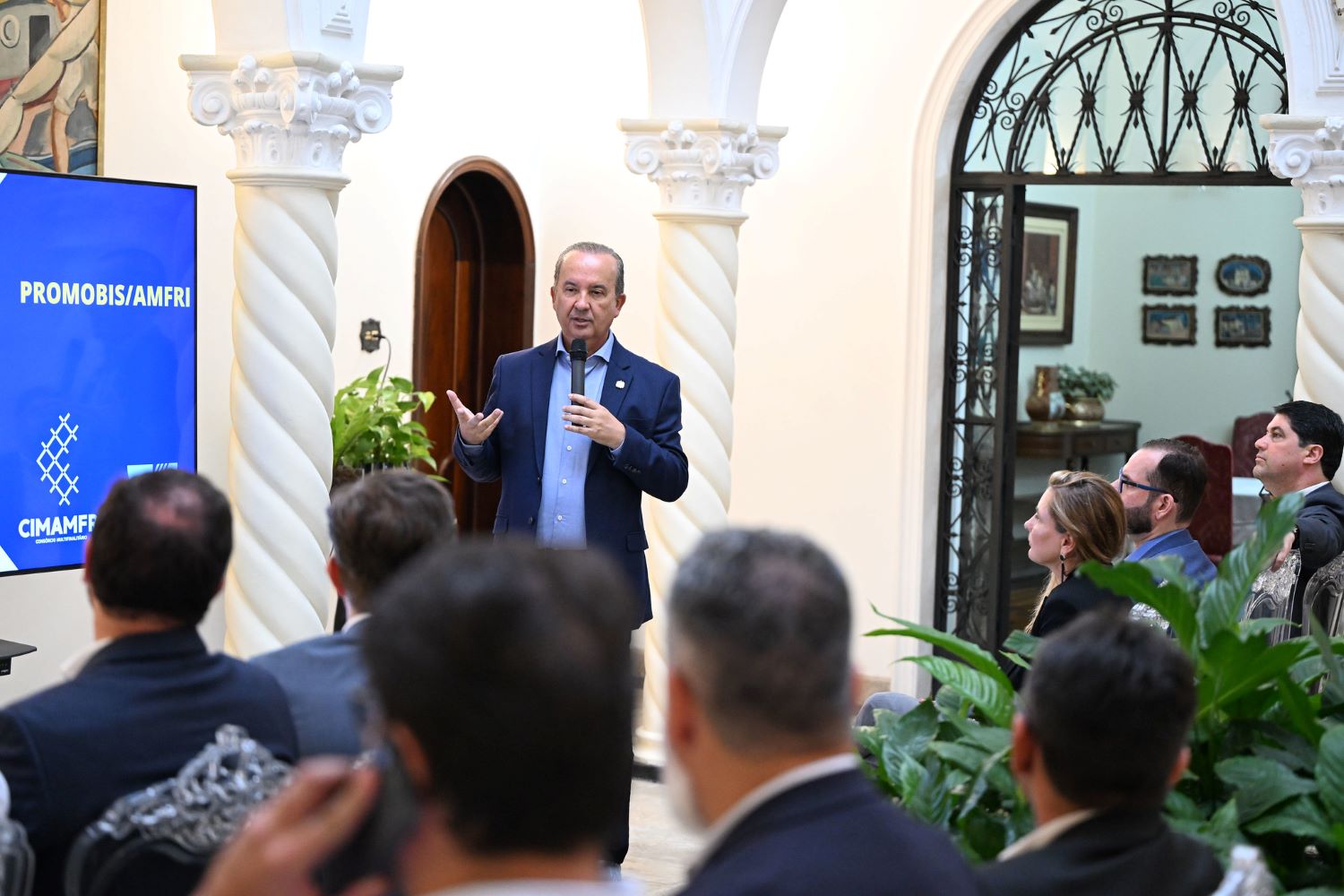 O governador Jorginho Mello recebeu nesta sexta-feira, 26, representantes da Associação dos Municípios da Região da Foz do Rio Itajaí (Amfri), que apresentaram o projeto de mobilidade para a região, o Promob, e pediram apoio do Governo do Estado