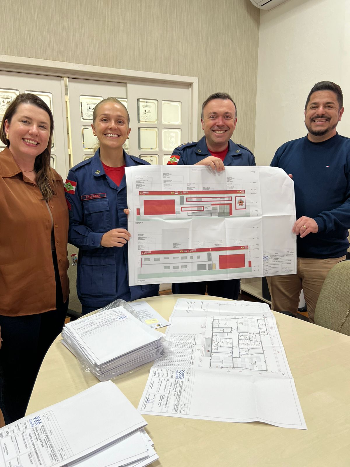 O prefeito de Penha, Luizinho Américo, entregou para o Corpo de Bombeiros Militar de Santa Catarina (CBMSC), nesta segunda-feira, 6, o projeto de engenharia para construção do quartel da corporação penhense.