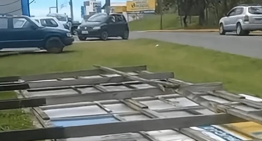 Morador do bairro Itajuba, de 55 anos, foi atingido por uma placa de publicidade (outdoor) na Avenida Governador Celso Ramos, no Centro da Cidade. Ele teve ferimentos em um dos braços.