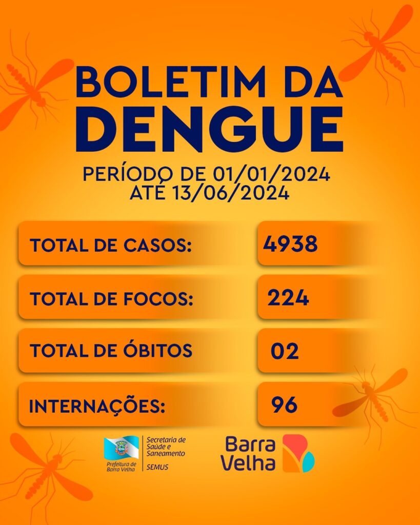 A Secretaria de Saúde da Prefeitura de Barra Velha, por meio da Vigilância Epidemiológica, atualiza nesta sexta-feira, 14 de junho, o boletim sobre a situação da dengue no município.