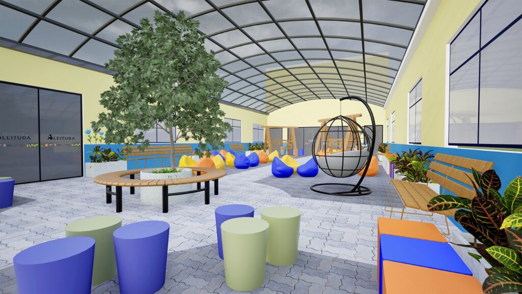 O projeto contempla reforma completa da estrutura, pintura, ajustes elétricos e instalação de portas, novos brinquedos pedagógicos, além de equipamentos voltados à educação. A biblioteca contará também com um acervo de 1.200 livros, incluindo títulos em braile, fantasias e materiais de contação de histórias — criando um espaço lúdico que estimula a imaginação, a leitura e o desenvolvimento emocional das crianças.