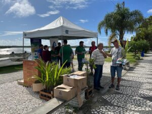 Durante o evento foram entregues folders educativos sobre a Lei de limpeza dos terrenos baldios, coleta seletiva, distribuição de mudas nativas e copos de água pela Casan e a conscientização do dia da água que acontece dia 22 de março.