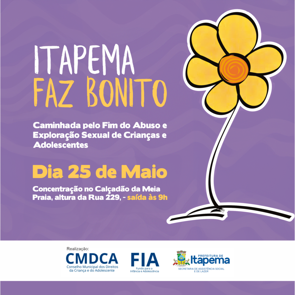 Durante o chamado “maio laranja” uma programação especial foi realizada em diversos do sociedade com o objetivo de combater o abuso e a exploração sexual de crianças e adolescente. E para encerrar a Campanha Itapema Faz Bonito acontece neste sábado (25/05) uma caminhada no Calçadão da Meia Praia. A concentração será na altura da Rua 229 e saída 9h.