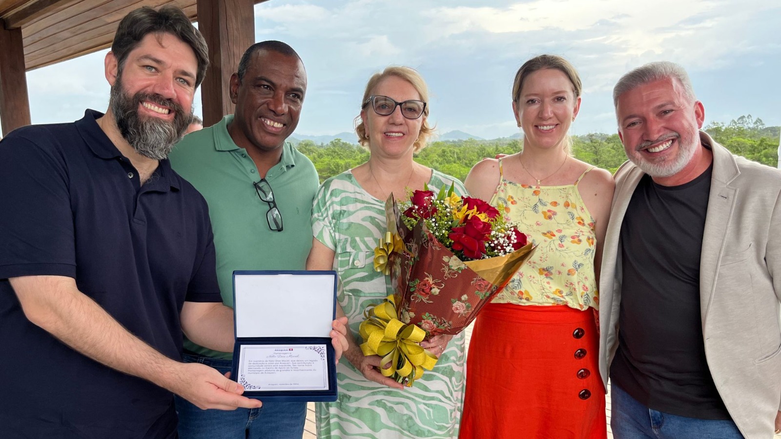 A esposa, Rosalina Viapiana Maciel, recebeu flores e agradeceu a homenagem. “Nós sempre recebemos muito bem o turista, investimos em Araquari em uma época que ninguém acreditava, e muitas pessoas conheceram a cidade por meio do nosso restaurante. Essa homenagem está sendo recebida com muito carinho e gratidão”.