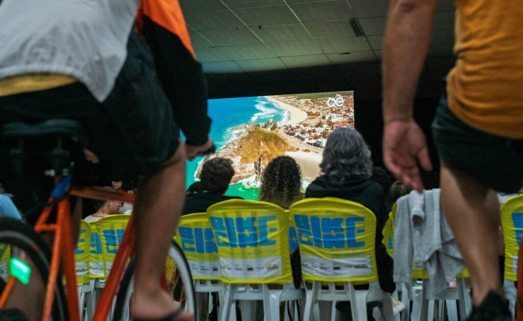 Mais de 170 pessoas reuniram para prestigiar a sessão de cinema promovida pelo BikeCine no último sábado (22). O evento, que promoveu o cinema com energia movida a pedaladas de bicicleta de maneira inédita na cidade, contou com apoio da Secretaria de Turismo e patrocínio da Águas de Penha no Espaço Educacional do Futuro.