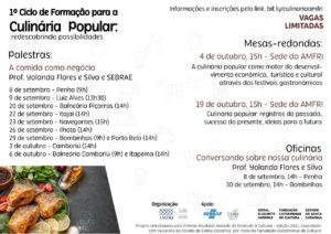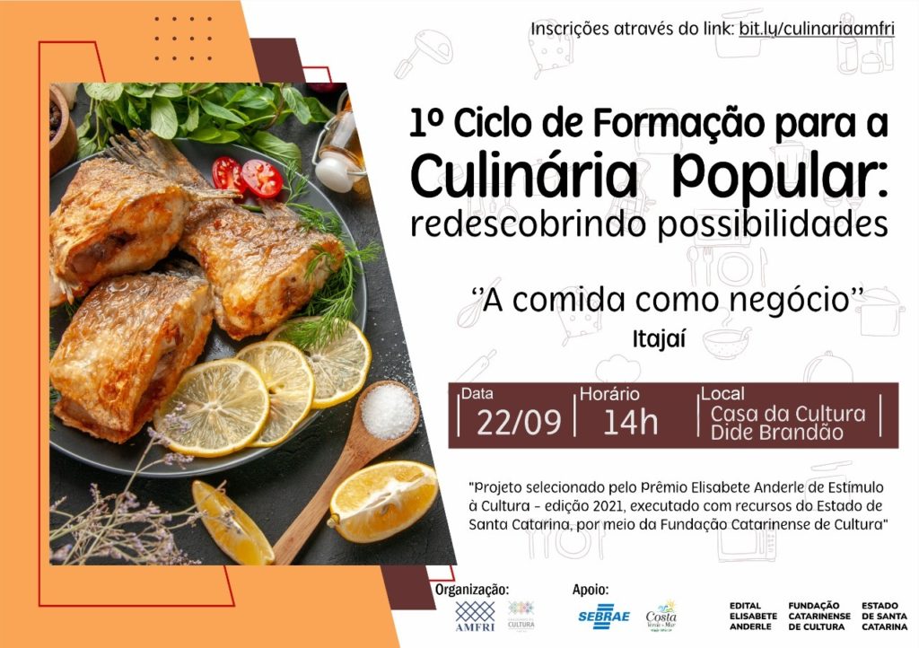🍽️ O colegiado de Cultura da AMFRI está promovendo entre os meses de setembro e outubro o “1º Ciclo de Formação para a Culinária Popular: redescobrindo possibilidades”, evento aprovado pelo Edital Elisabete Anderle 2021, da Fundação Catarinense de Cultura.