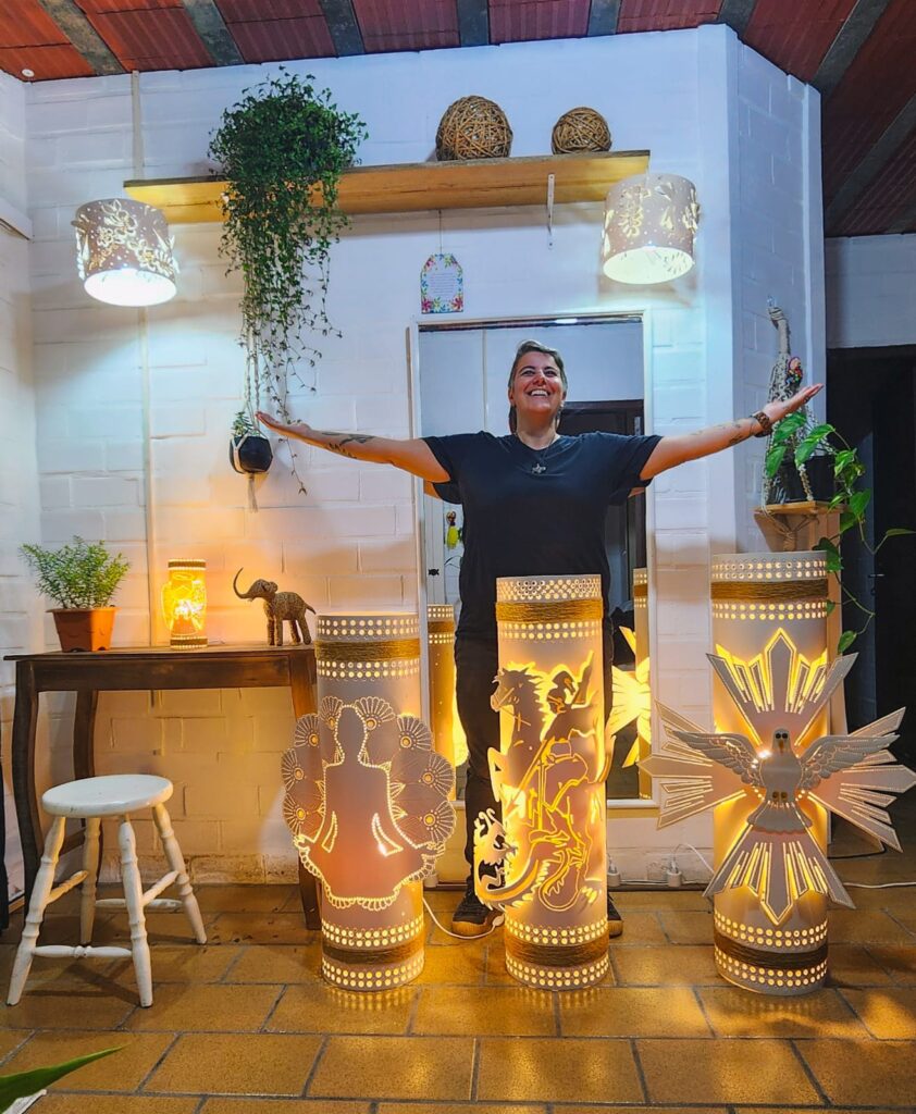 Nize Claudino é nascida e criada em Penha. Desde 2014, dedica-se à criação de esculturas em PVC, explorando as possibilidades do material para produzir obras que variam em tamanho, chegando a atingir até 2 metros de altura. O projeto “Do Negativo ao Positivo” foi contemplado pela Política Nacional Aldir Blanc, coordenada em Penha pelo Governo Municipal por meio da Fundação Municipal Cultural.