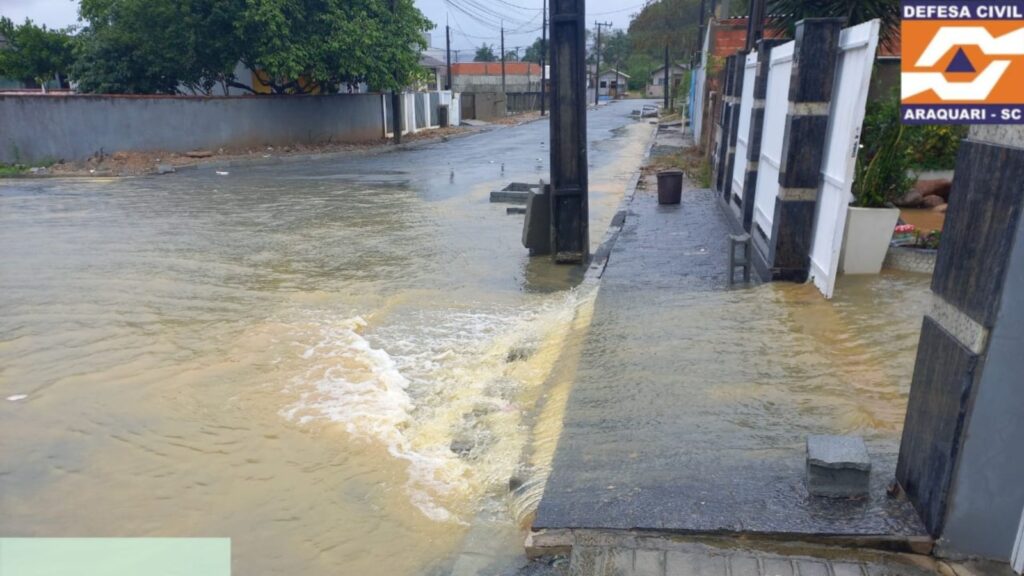 Araquari registrou o acumulado de 136 milímetros de chuva na madrugada de domingo (23) para segunda (24). O volume era esperado para o período de 20 dias.