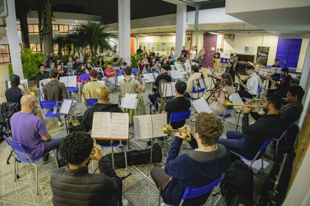 “Estou superfeliz em participar do projeto. Nunca havia tocado em uma formação como esta”, comenta a trombonista Michele Schade, que se sentiu acolhida pelo grupo desde o primeiro ensaio. “A linguagem da Big Band está ficando mais natural para mim, o que me deixa empolgada. O número de mulheres tocando trombone no Brasil é bem reduzido, então vejo que isso traz representatividade. Quando a gente toca um repertório mais desafiador, as meninas admiram bastante. E é um dos motivos pelos quais eu estudo, não desisto e sigo em frente.”