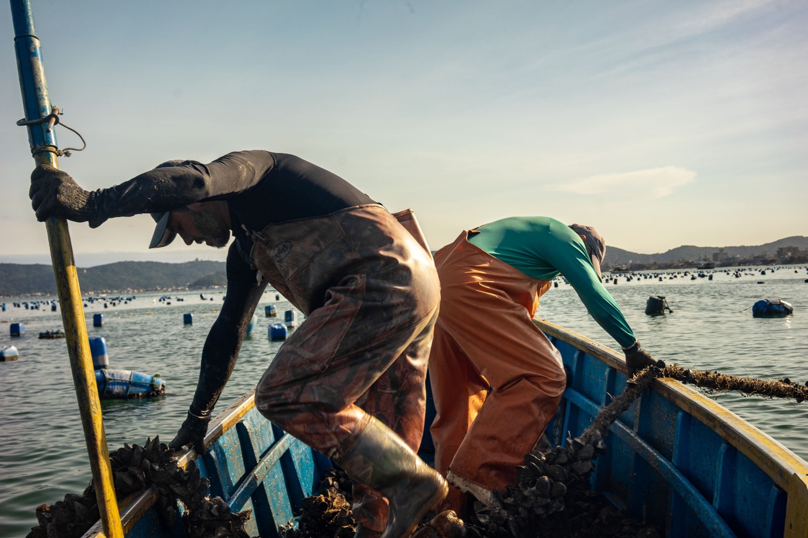 Alvaro Dante Fiore destaca a importância da vivência com os maricultores e os aprendizados que adquiriu ao longo do projeto. “O trabalho deles é muito difícil. Eles dependem do clima, do vento, da poluição, das marés vermelhas. Pra mim foi uma grande descoberta e estou bem feliz porque pude aprender muito como as coisas funcionam na maricultura. Espero que o projeto possa levar um pouco dessa consciência para as pessoas, que também não têm essas informações”, conclui.