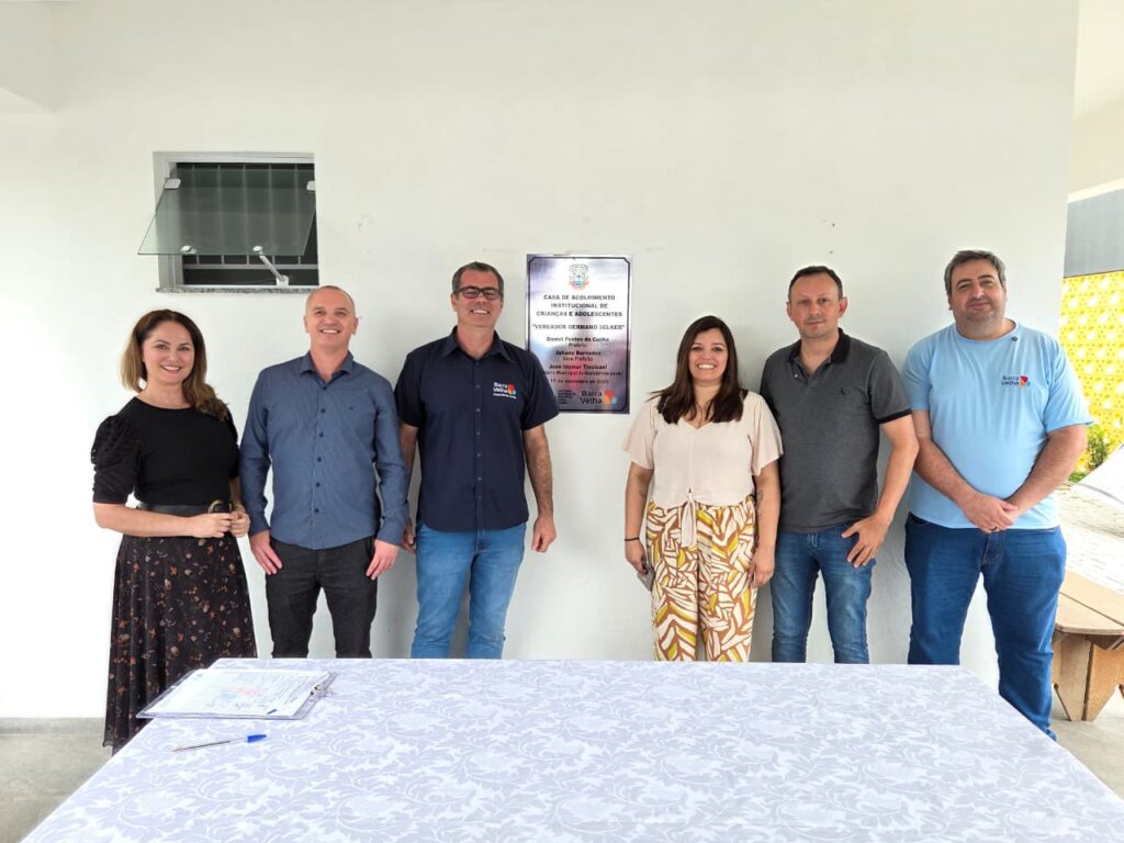 Na tarde desta segunda-feira, 17 de novembro, foi realizada a solenidade de inauguração da Casa de Acolhimento Institucional Vereador Germano Selker. O evento contou com a presença do secretário municipal de Assistência Social, José Idemar Trevisani; do prefeito Daniel Pontes da Cunha; do vice-prefeito Juliano Bernardes; e de demais autoridades municipais.