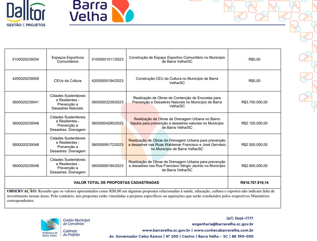 O prefeito de Barra Velha, Douglas da Costa (PL) repassou nesta semana ao presidente do Partido dos Trabalhadores local (PT) uma relação das obras pleiteadas pelo Município junto ao Plano de Aceleração do Crescimento (PAC), do Governo Federal.