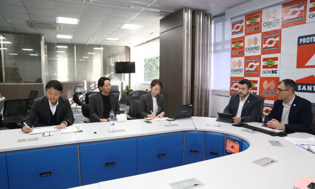 O secretário de Estado da Proteção e Defesa Civil de Santa Catarina (SDC), coronel BM Fabiano de Souza, o secretário da Secretaria de Estado do Planejamento (Seplan), Edgard Usuy, o Banco Regional de Desenvolvimento do Extremo Sul (BRDE), juntamente com equipe técnica, se reuniram nesta terça-feira, 28, com representantes da Agência de Cooperação Internacional do Japão (JICA) para discutir ações de mitigação e prevenção aos desastres.