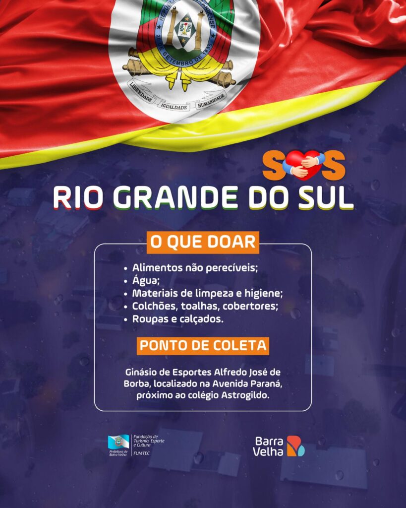 Faça a diferença na vida dos atingidos pelas inundações no Rio Grande do Sul! Contribua para a campanha de arrecadação de donativos levando sua doação aos novos pontos de coleta em Barra Velha.