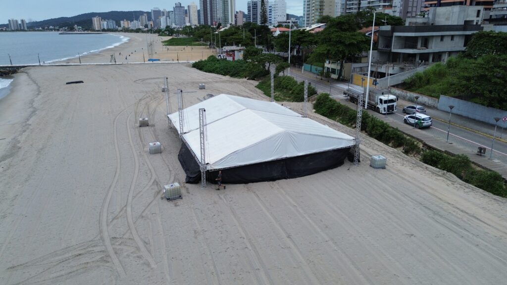 Montagem da estrutura do Conexão BP já movimenta a orla de Balneário Piçarras