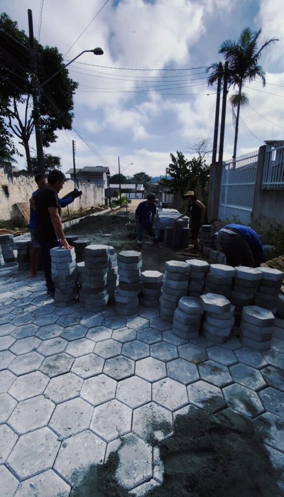 As obras de pavimentação das Ruas Silvia Regina Nicoluzzi, no Bairro Nossa Senhora de Fátima, Antônio Leandro dos Santos, no Centro, e a Rua Maria Gonzaga Cunha, em Armação do Itapocorói, seguem a todo vapor. Também no Bairro de Armação do Itapocorói, o serviço de repavimentação de lajota na Rua João Mariano Furtado foi finalizado e a obra do calçadão da Rua Inácio Francisco de Souza está em fase final.