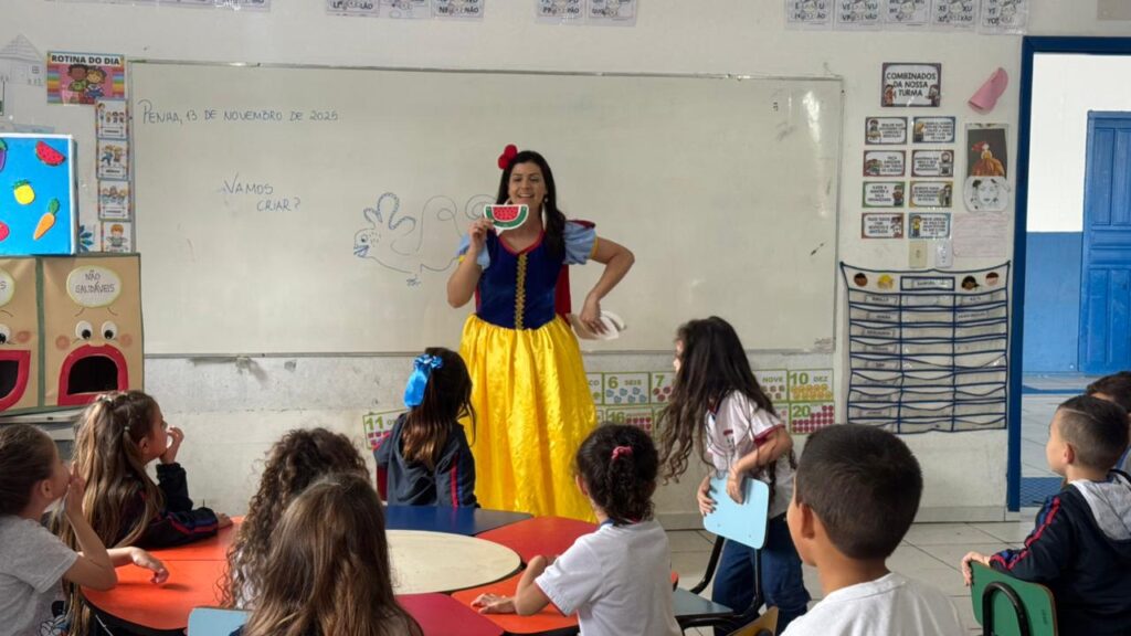“Utilizamos elementos do universo encantado, com a figura da Branca de Neve, para despertar o interesse dos pequenos sobre alimentação, promovendo a conscientização neste período essencial para a formação de hábitos alimentares saudáveis”, esclarece a nutricionista do NEM, Vanessa.