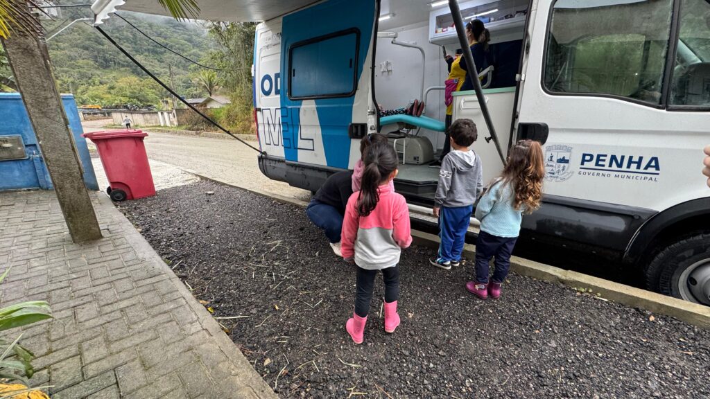 A Prefeitura de Penha retomou a atuação do Odontomóvel nas unidades de ensino da cidade neste mês de agosto. Os alunos recebem atendimentos da equipe de odontologia por meio do Programa Saúde na Escola, uma parceria entre as secretarias de Saúde e Educação.