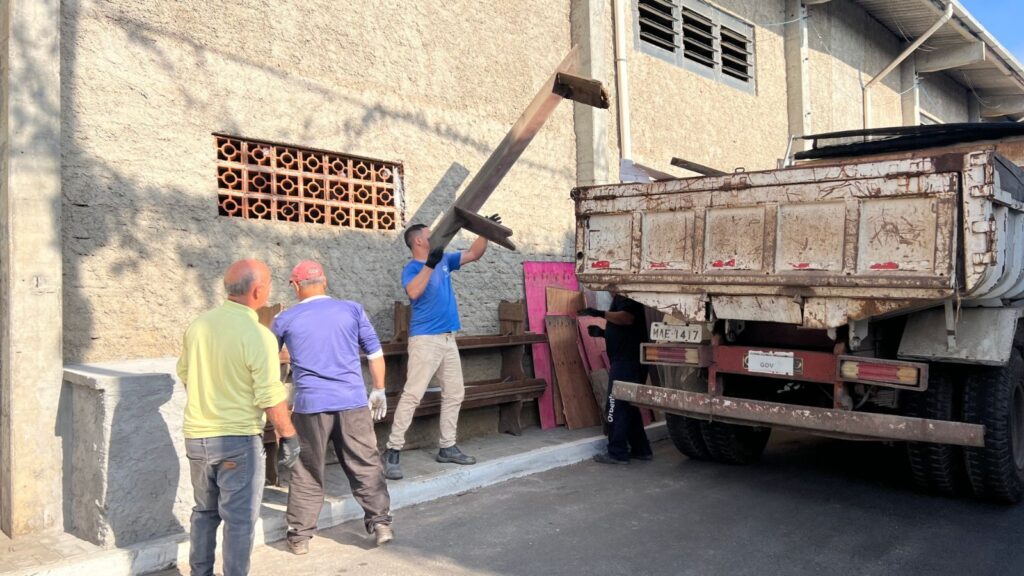 A coleta acontece na primeira e terceira semana de cada mês. Também podem ser descartados fogões, geladeiras e móveis em geral. Apenas não estão sendo coletados entulhos de construção civil e podas de árvore.