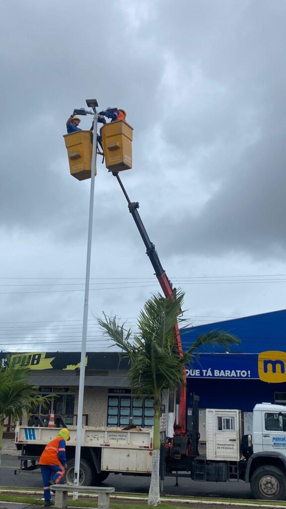 Na primeira etapa da revitalização, focamos na iluminação. As antigas luminárias, que há anos serviram à praça, estão sendo substituídas por novas e eficientes luminárias de LED, cada uma com 200 watts de potência. Além disso, os refletores da quadra esportiva, essenciais para atividades noturnas, estão sendo trocados por outros de 800 watts cada, proporcionando uma iluminação mais brilhante e uniforme.