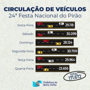 Na 24° Edição da Festa Nacional do Pirão que ocorreu entre os dias 02 a 07 de setembro de 2022. A Prefeitura de Barra Velha por intermédio da Central de Videomonitoramento em parceria com a Polícia Militar de Santa Catarina(PMSC), através do 27° Batalhão de Polícia Militar, contando com o apoio do 5° Comando Regional de Polícia fortaleceu a segurança do evento e que contou com a Plataforma de Videomonitoramento Inteligente (utilizado tanto na identificação de pessoas, quanto de veículos).