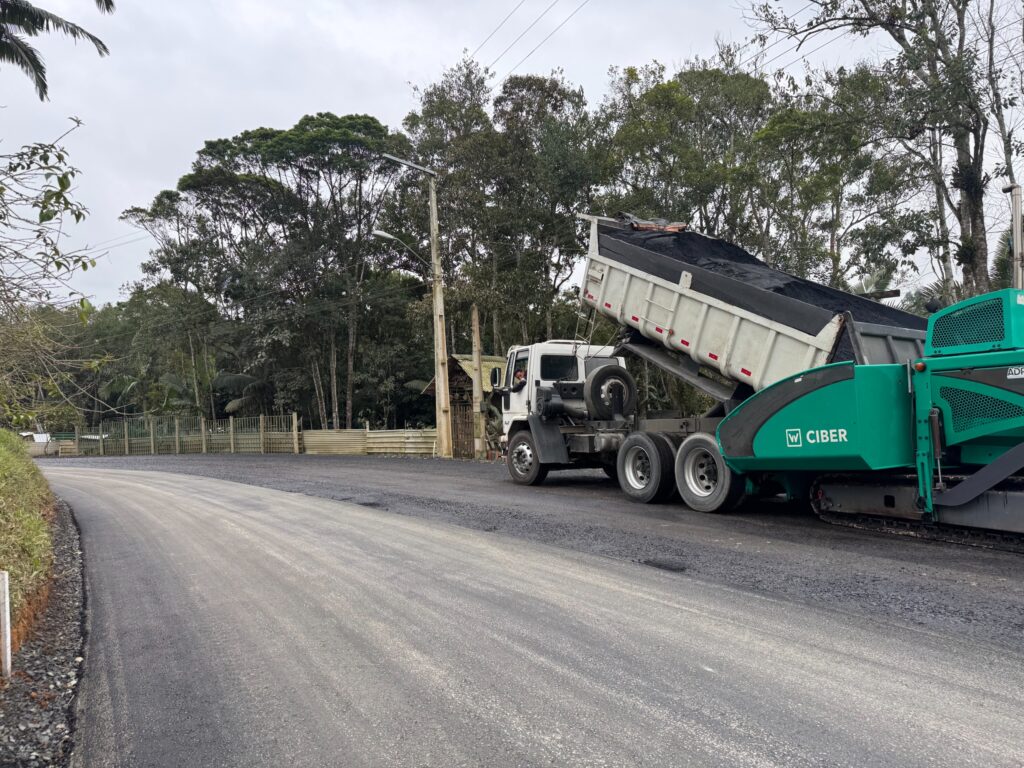 O asfalto chegou no trecho 4 da Estrada Geral da Lagoa nesta quinta-feira (24/07), apenas 2 semanas após a assinatura da ordem de serviço. A obra avança em ritmo acelerado e segue com a pavimentação asfáltica – a depender das condições climáticas – para posterior sinalização viária.