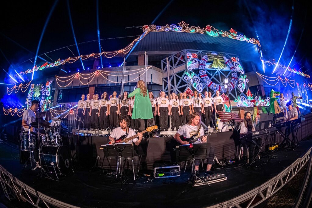 Sob a regência da professora Kátia Siqueira, o coral entoa clássicos natalinos como “Vem Chegando o Natal”, “Noite Feliz”, “Natal das Crianças” e “We Wish You a Merry Christmas”. Acompanhando o grupo, uma banda formada por professores do Instituto Arte Maior: Edilson Forte no piano, Nathália Fernandes no teclado, Lucas Machado na bateria, Evandro Albino na guitarra e Kahlil Belo no contrabaixo.
